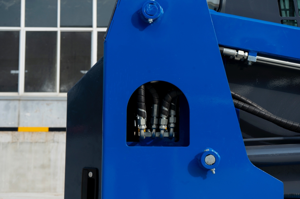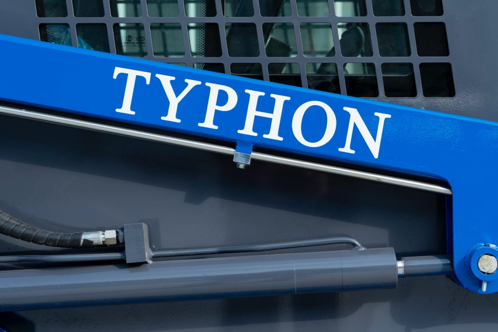 The TYPHON STOMP 509 has an operational weight of 1.4 ton and a transport length of 2570mm with bucket. The bucket width is 1010mm, and the maximum unloading height is 2150mm. With a dump reach of 560mm and dump angle of 33 degrees on the ground and a dump angle of 45 degrees at the highest point, the skid steer sports a radial lift height of 3050mm and a height to bucket pin of 2580mm.